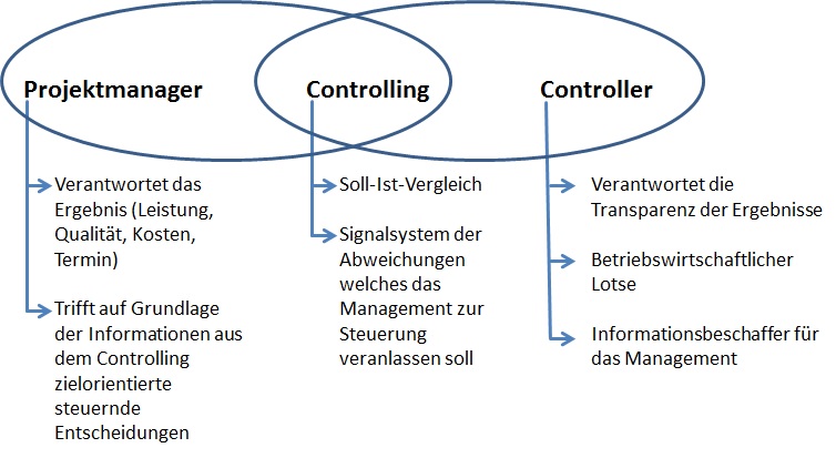 Projektcontrolling soll gewährleisten, dass die jeweils nächst höhere Managementebene (i.d.R. Lenkungsausschuss) auf der Basis einer transparenten Bewertung des tatsächlichen Projektablauf hinsichtlich Kosten, Terminen und Ergebnissen Führungsaufgaben ausüben kann