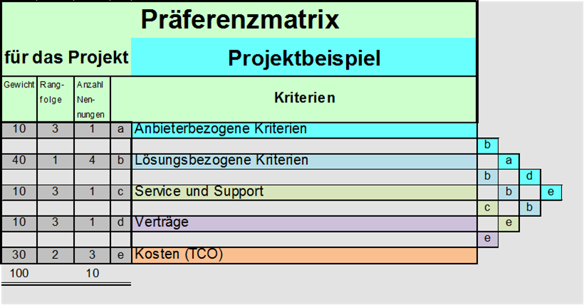 Eine etwas andere Darstellung eines paarweisen Vergleichs ist die Präferenzmatrix.