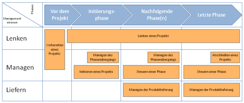 Ein PRINCE2-Projekt wird zur besseren Steuerung in Phasen gegliedert. Eine Freigabe von Ressourcen erfolgt stets für die folgende Managementphase