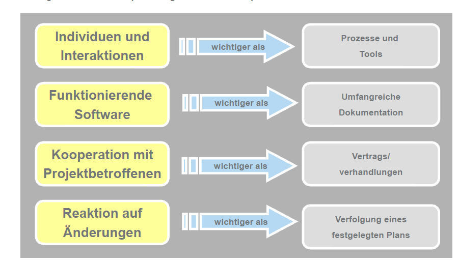 Scrum verkörpert die Werte der agilen Software-Entwicklung, die 2001 im Agilen Manifest von Ken Schwaber, Jeff Sutherland und anderen formuliert wurden