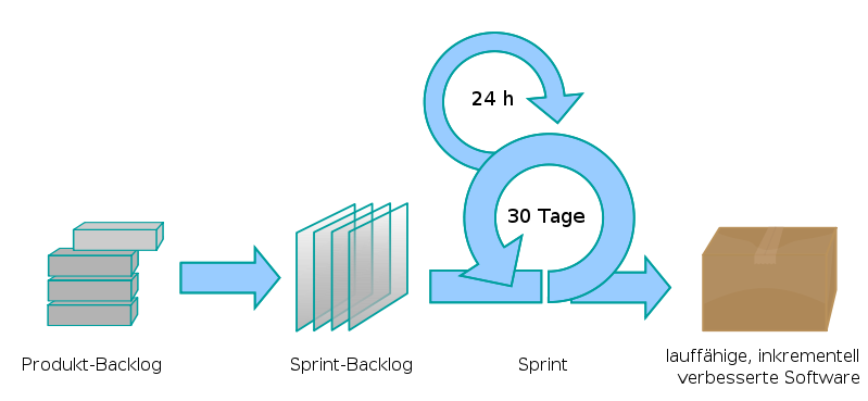 Scrum (englisch für Gedränge) ist ein schlanker, agiler Prozess für Projektmanagement u. a. in der Softwareentwicklung. Der Ansatz von Scrum ist empirisch,inkrementell und iterativ.